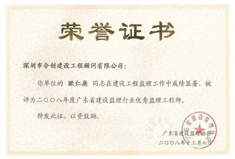 广东省优秀监理工程师-欧仁庚