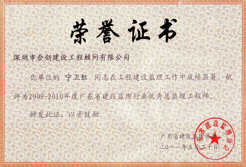 广东省优秀总监理工程师--宁卫红
