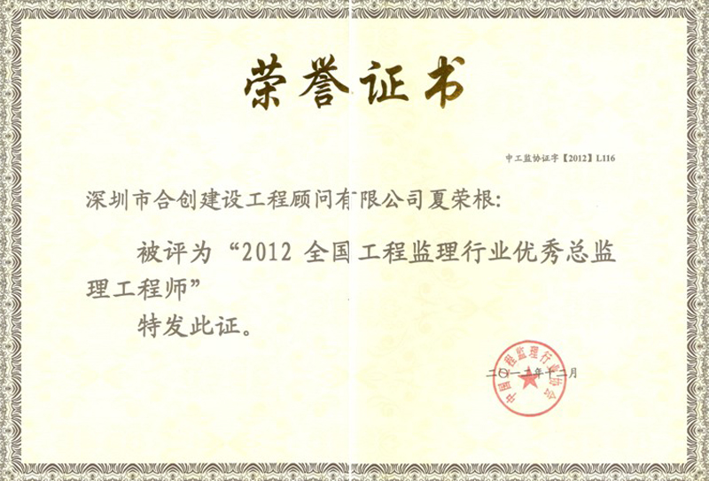 全国工程监理行业优秀总监理工程师--夏荣根