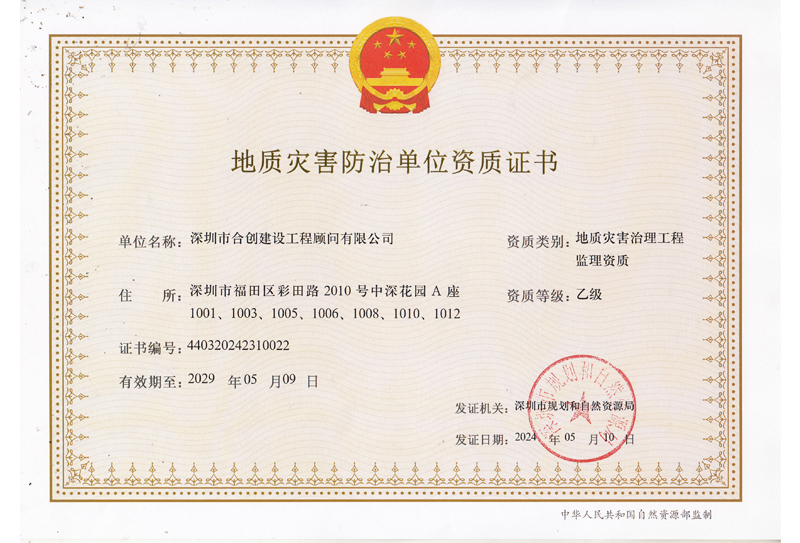 地质灾害防治单位资质证书