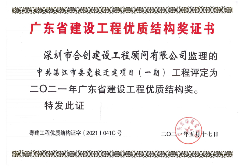 中共湛江市委党校迁建(一期)工程评定为2021年广东省建设工程优质结构奖
