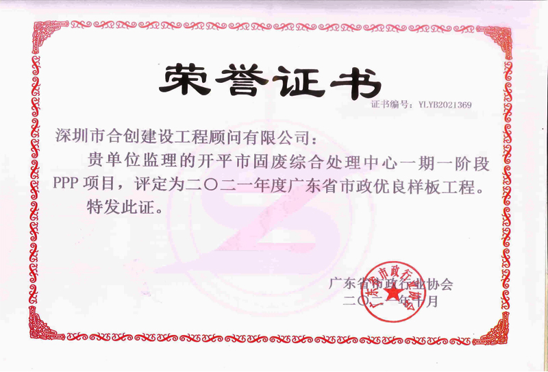 开平市固废综合处理中心一期一阶段PPP项目评定为2021年广东省市政优良样板工程