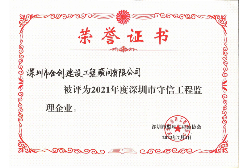 2021年度深圳市守信工程监理企业