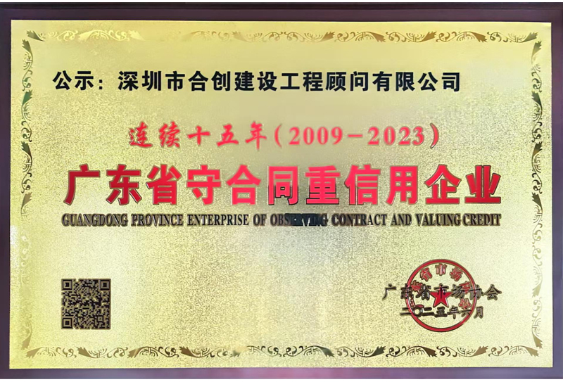 广东省守合同重信用连续15年(2009-2023)